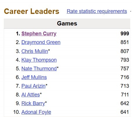 這樣一來庫里解鎖常規(guī)賽生涯第1000場比賽,勇士隊史首人!