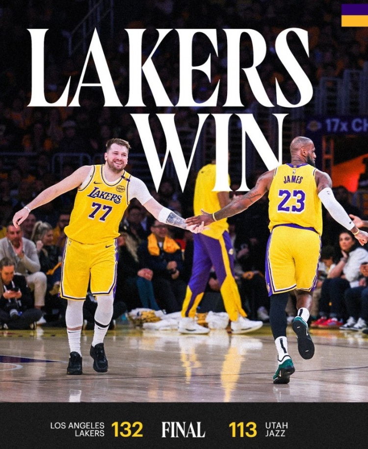 2月11日訊 NBA常規(guī)賽,湖人主場132-113大勝爵士,豪取六連勝。賽后,詹姆斯和東契奇同時登上湖人官方的贏球海報,官方寫道:“六連勝啦。” 標(biāo)簽: NBA 籃球 湖人 詹姆斯 東契奇
