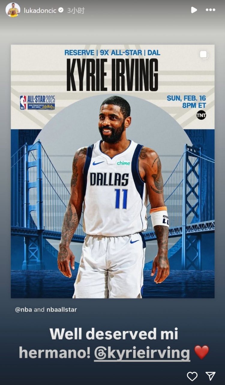 東契奇轉發(fā)相關報道,并評論道:“實至名歸@歐文???!?/p>