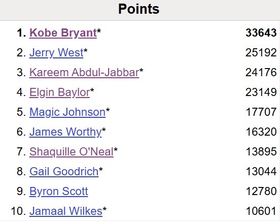 本場(chǎng)比賽過(guò)后,詹姆斯的湖人生涯得分來(lái)到10603分,超越賈馬爾-威爾克斯,上升至隊(duì)史第10位。
