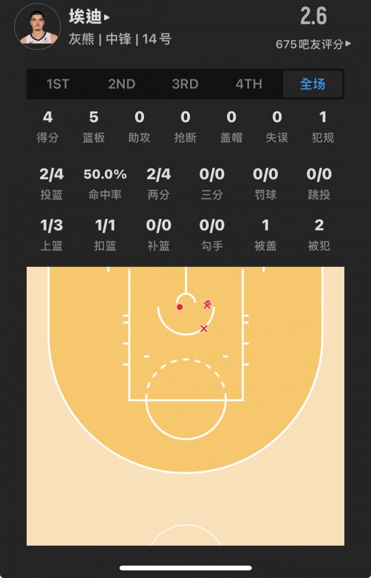 灰熊9號秀 扎克-埃迪 登場20.1分鐘