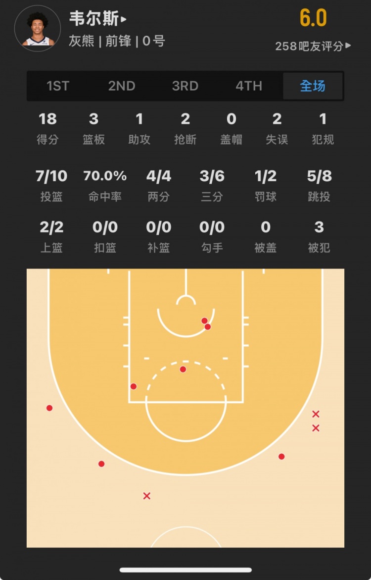 灰熊39號秀 杰倫-韋爾斯 登場31.0分鐘