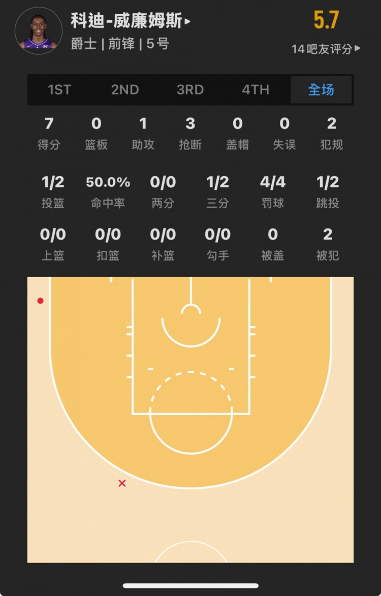爵士10號秀 科迪-威廉姆斯 登場16.7分鐘