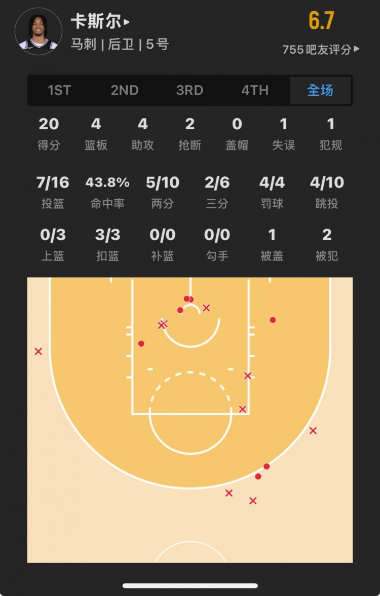 馬刺4號秀 斯蒂芬-卡斯爾 登場24.1分鐘