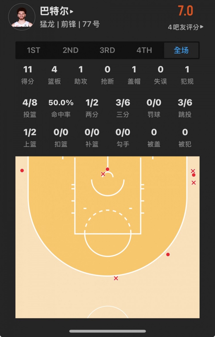 猛龍落選秀 賈米森-巴特爾 登場11.1分鐘