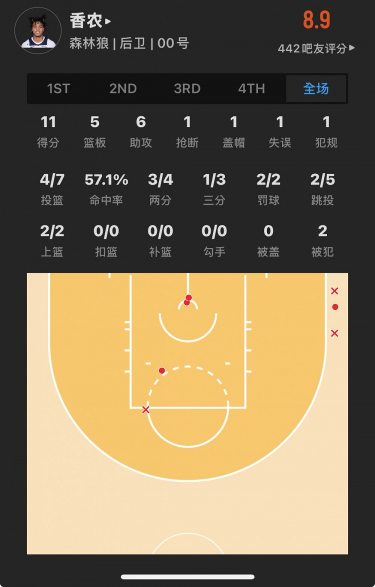 森林狼27號秀 小特倫斯-香農(nóng) 登場20.3分鐘