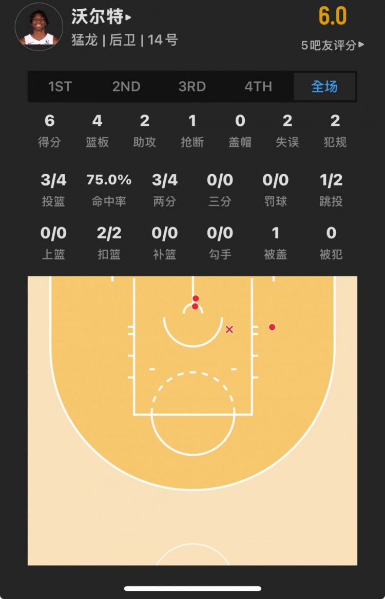 猛龍19號秀 賈科比-沃爾特 登場21.8分鐘