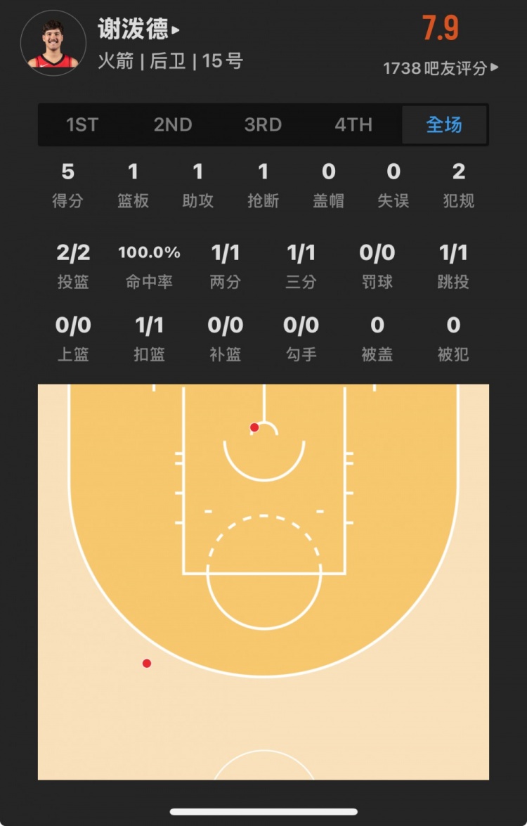 火箭探花秀 里德-謝潑德 登場11.4分鐘