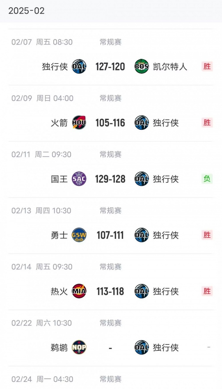 據(jù)統(tǒng)計(jì),最近5場比賽,獨(dú)行俠取得了4勝1負(fù),唯一輸球是加時(shí)不敵國王。