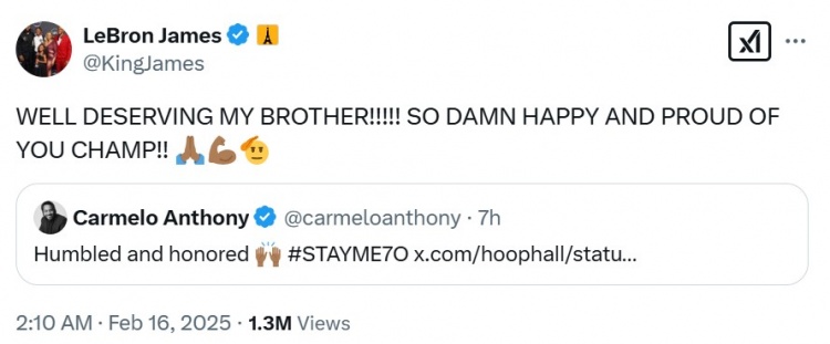 勒布朗-詹姆斯轉(zhuǎn)發(fā)評論道:“我的兄弟實至名歸?。。。?!我TMD太為你這位冠軍感到高興和驕傲了??????????????????????!”