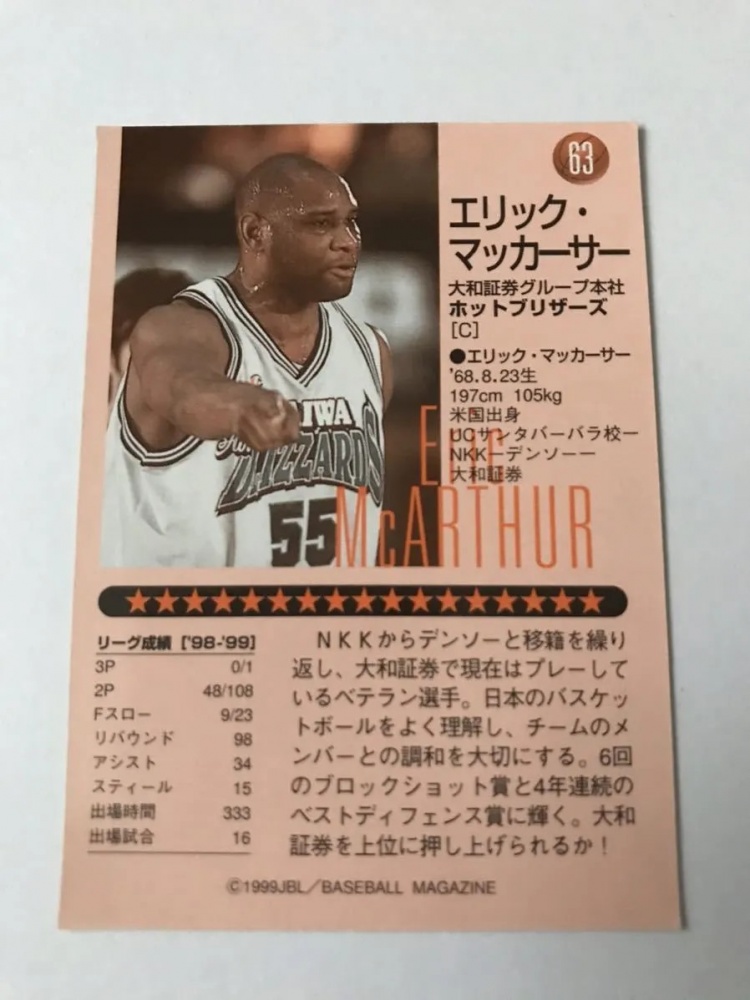 21世紀初另外還有一位日本的歸化球員麥克阿瑟,他在1995年與日本女性結(jié)婚,在2000年才取得日本國籍,當他2006年被選拔為日本男籃代表的時候已經(jīng)38歲。他的兒子目前在B1聯(lián)賽作為職業(yè)球員效力。