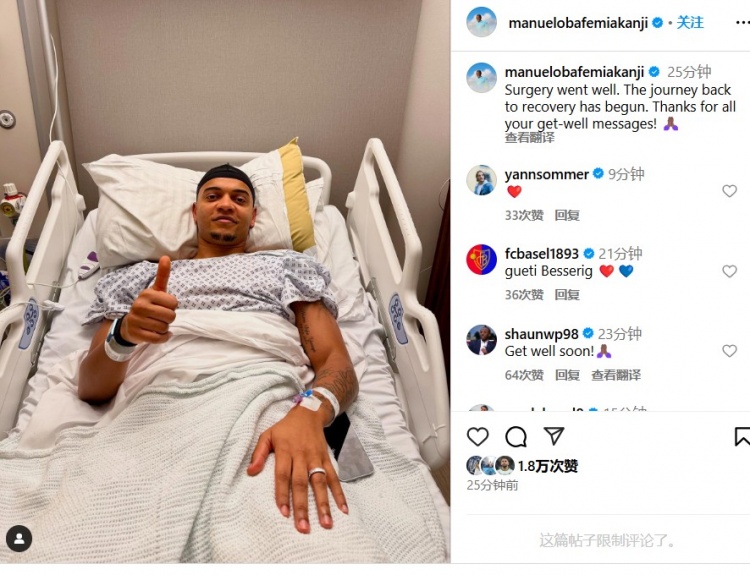 阿坎吉:“手術(shù)進(jìn)行得很順利,康復(fù)之旅已經(jīng)開始,感謝你們所有祝福的信息!”