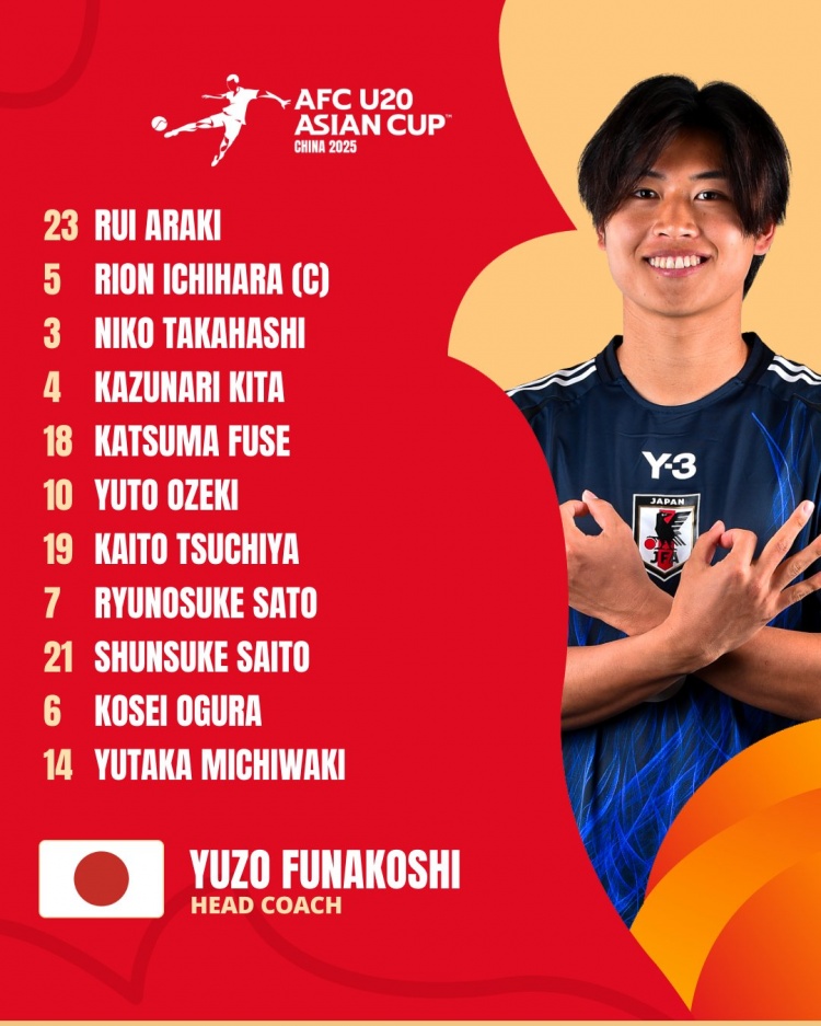 日本U20本場首發(fā)如下: