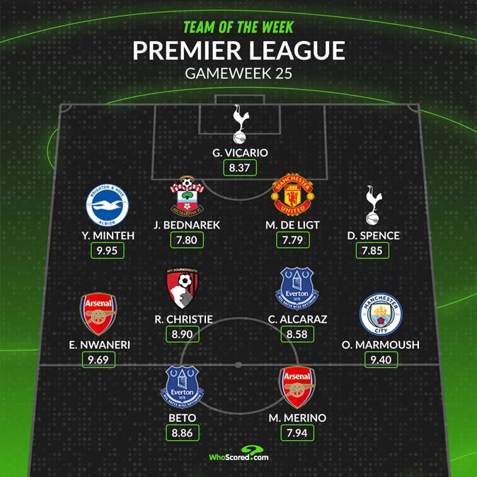 WhoScored英超第25輪最佳陣容