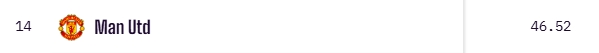 數(shù)據(jù)機(jī)構(gòu)Opta最新的預(yù)測結(jié)果顯示,曼聯(lián)本賽季最終可能拿到46-47個積分,預(yù)計排名聯(lián)賽第14。