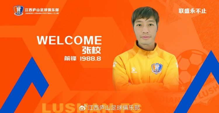 經(jīng)與本人友好協(xié)商一致,球員張校正式加盟江西廬山足球俱樂部。