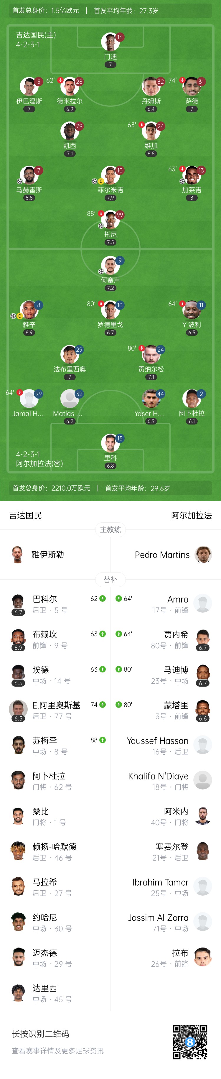 02月18日訊 在昨晚結束的亞冠精英聯(lián)賽西亞區(qū)最后一輪中,沙特球隊吉達國民4-2擊敗卡塔爾球隊加拉法,雙方分別首發(fā)10外援。吉達國民的首發(fā)總身價更是達到了1.5億歐。