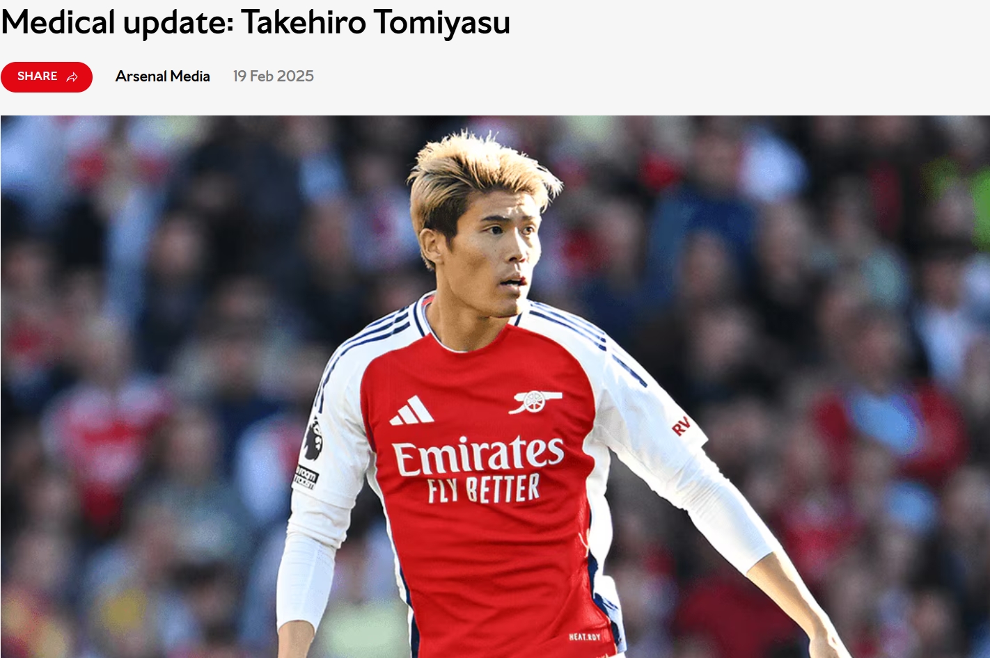 02月19日訊 阿森納官方宣布,富安健洋重新進(jìn)行膝蓋矯正手術(shù),康復(fù)期至今年年底。