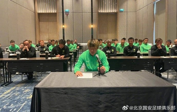 周金輝董事長的發(fā)言鼓舞了全隊(duì)的士氣,隊(duì)長張稀哲隨后代表全體隊(duì)員發(fā)言,他說:“新教練組的到來重塑了我們的足球思維,起初或許有磨合的陣痛,但現(xiàn)在,我們清晰感受到——這支團(tuán)隊(duì)的心跳得更快、更齊了。我們也將在主教練的帶領(lǐng)下,同心協(xié)力,一切以團(tuán)隊(duì)為先,集體為先。遵守隊(duì)規(guī),遵守賽風(fēng)賽紀(jì),堅(jiān)守職業(yè)道德。身披綠色戰(zhàn)袍的這些年,工體山呼海嘯的吶喊早已刻進(jìn)骨髓。我們記得球迷在場內(nèi)堅(jiān)毅又期待的目光,記得數(shù)以萬計(jì)的的綠色圍巾,更記得一次次場內(nèi)tifo給予我們的力量。新賽季的倒計(jì)時(shí)已經(jīng)響起!我們會(huì)像捍衛(wèi)家門一樣守護(hù)每一寸球場。沒有保留,沒有退路,唯有將每一分鐘燃燒到極致——為了北京,為球迷,更為了我們的信仰,“國安永遠(yuǎn)爭第一”!”