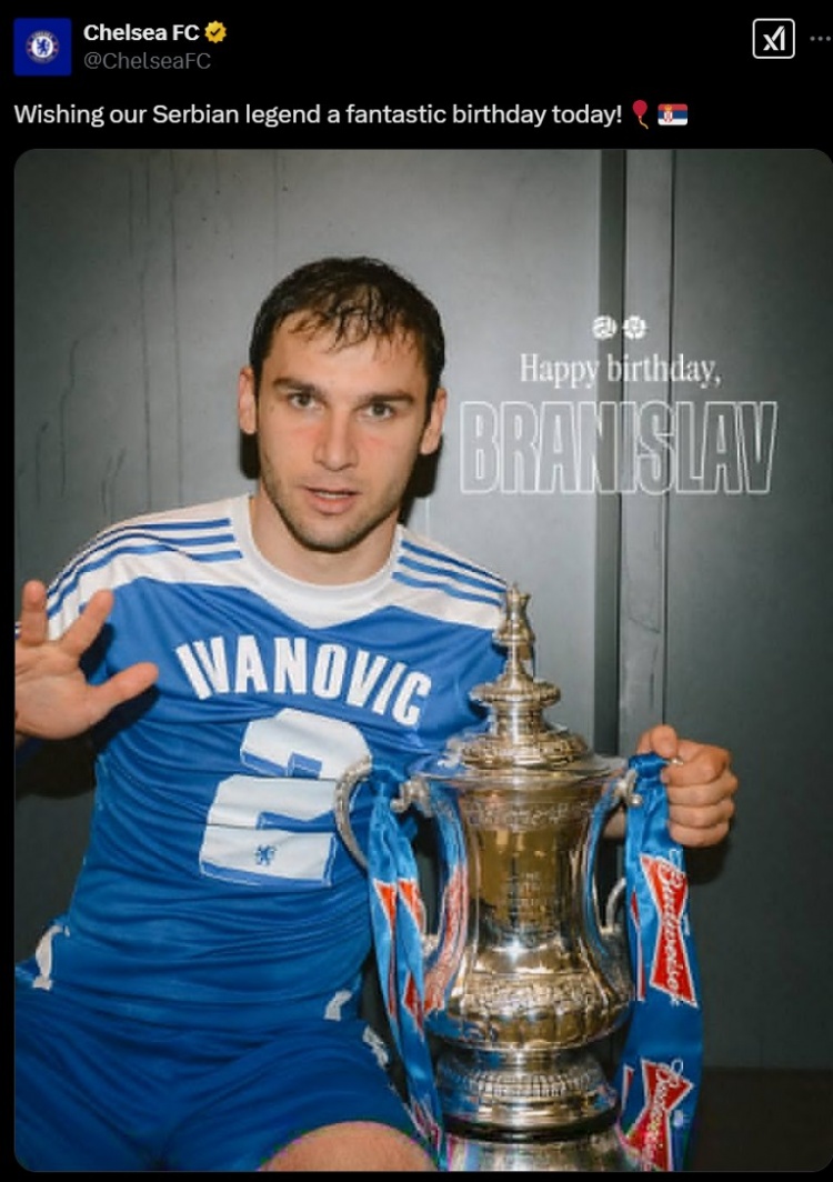 昔日帶刀后衛(wèi),切爾西官方祝伊萬諾維奇41歲生日快樂