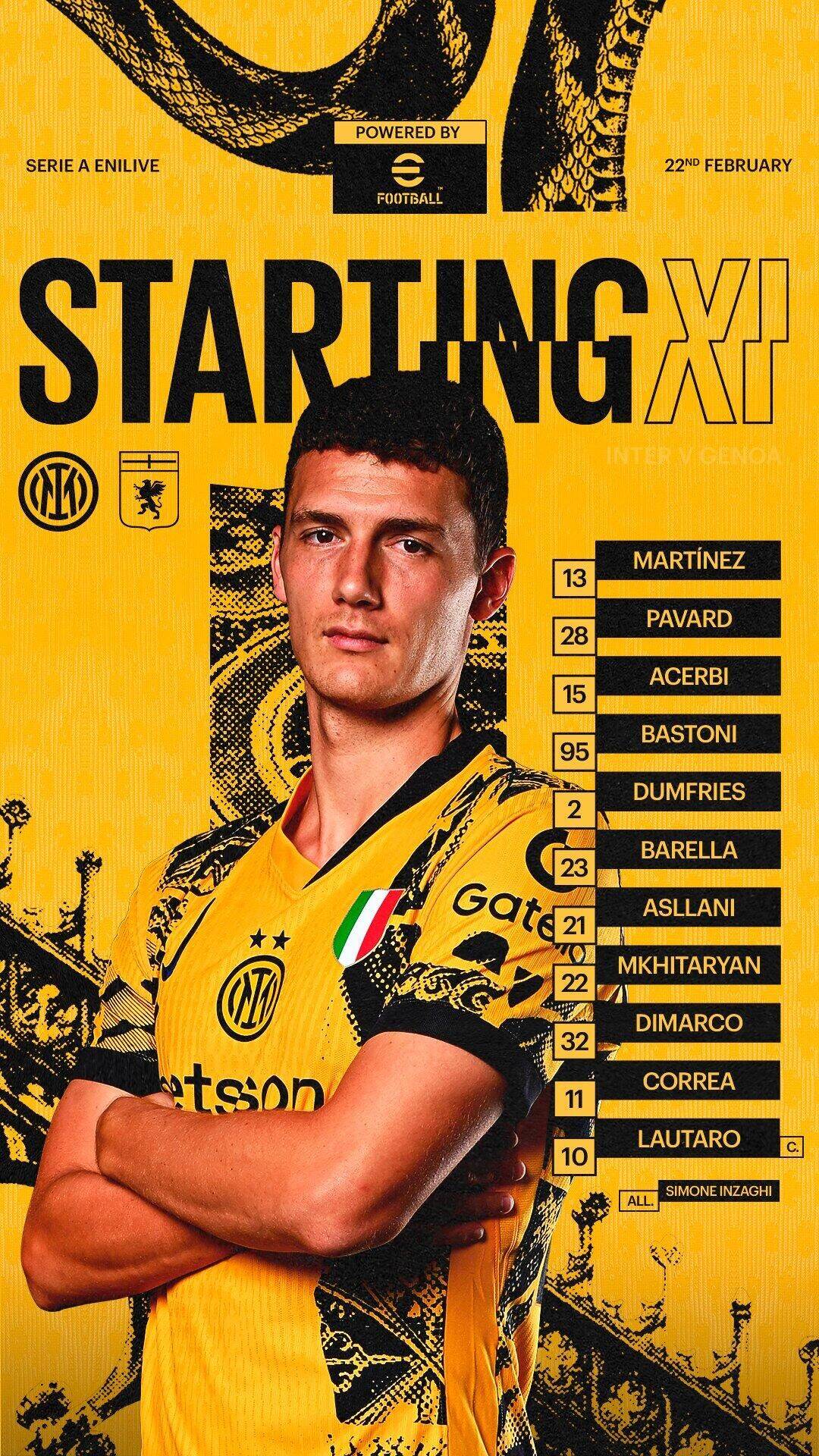 2月23日訊 意甲第26輪,國米主場對陣熱那亞。賽前,官方公布了本場的首發(fā)名單。