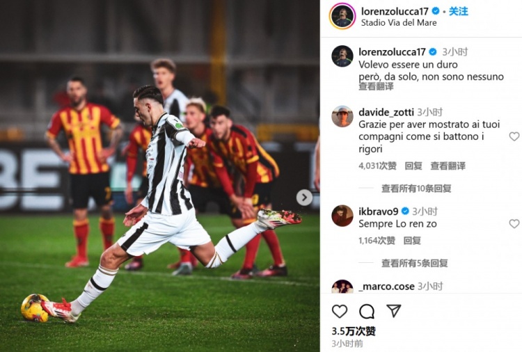 2月23日訊 近日,烏迪內(nèi)斯前鋒盧卡在社媒發(fā)文做出道歉,因為他在烏迪內(nèi)斯對陣萊切的比賽中拒絕將點球球交給隊內(nèi)點球手托萬來主罰。