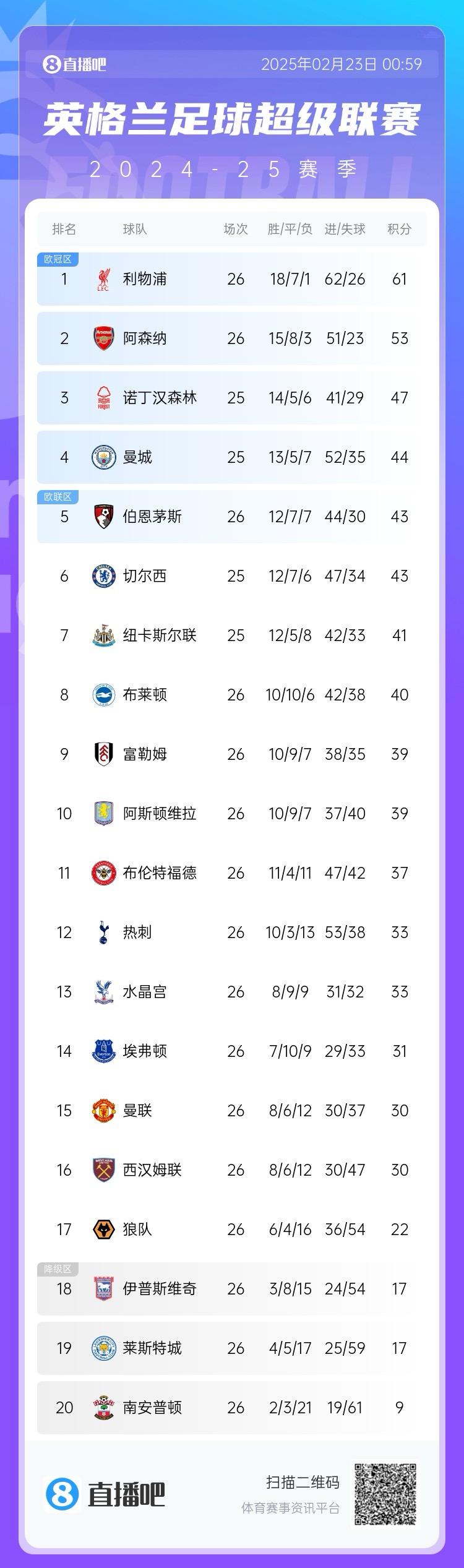 2月23日訊 阿森納vs西漢姆,槍手主場0-1落??!熱刺4-1伊普斯維奇。