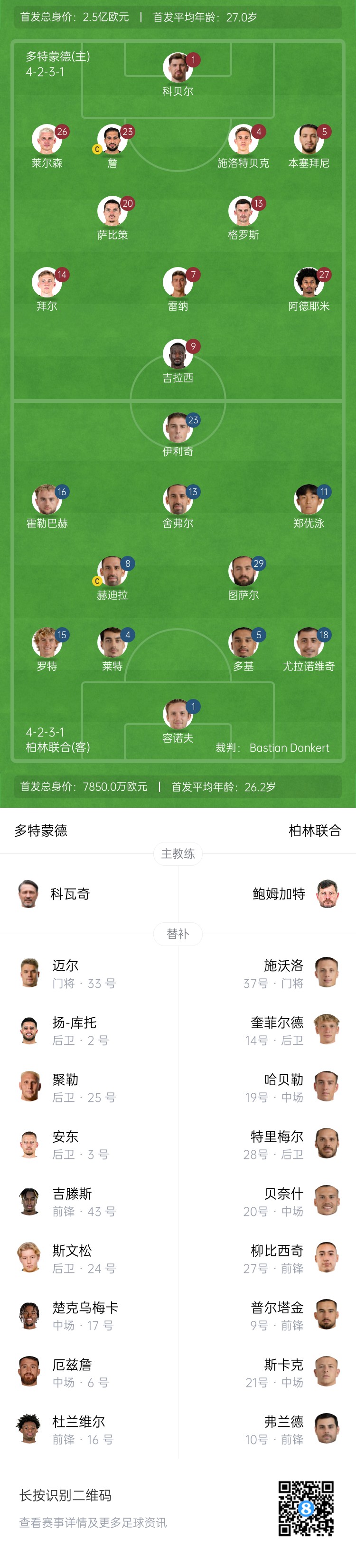 02月23日訊 德甲第23輪,多特蒙德主場(chǎng)對(duì)陣柏林聯(lián)合即將打響。賽前首發(fā)出爐。