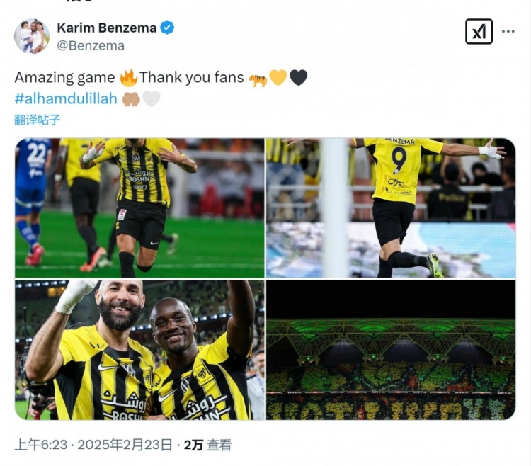 2月23日訊 沙特聯(lián)賽第21輪比賽,本澤馬破門,幫助吉達(dá)聯(lián)合主場(chǎng)4-1擊敗利雅得新月。