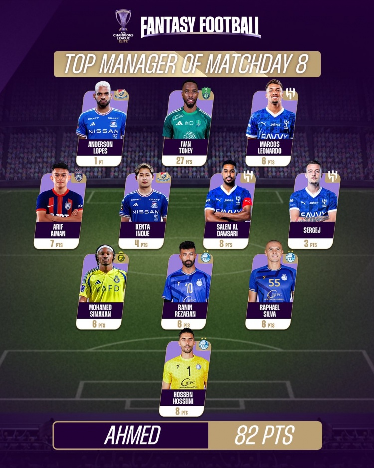 亞冠第8輪最佳陣容