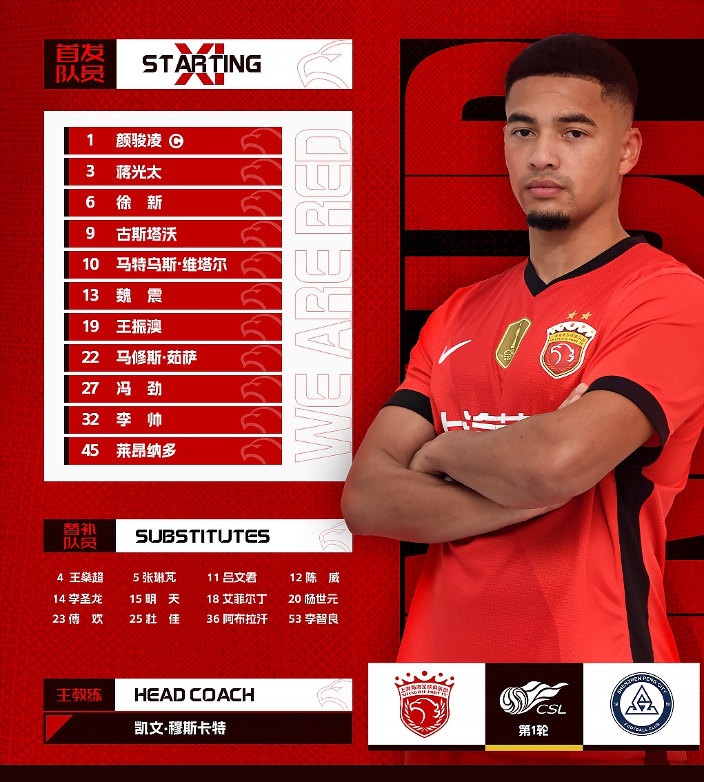 2025中超聯(lián)第1輪,上海海港vs深圳新鵬城,今日首發(fā)名單
