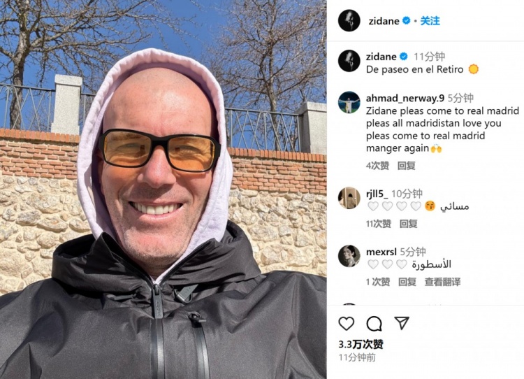 而皇馬名宿齊達(dá)內(nèi)則過得很是悠閑,他在今日通過社媒曬出自己的自拍照并配文:“漫步麗池公園?!丙惓毓珗@也是馬德里市區(qū)的知名景點(diǎn)。