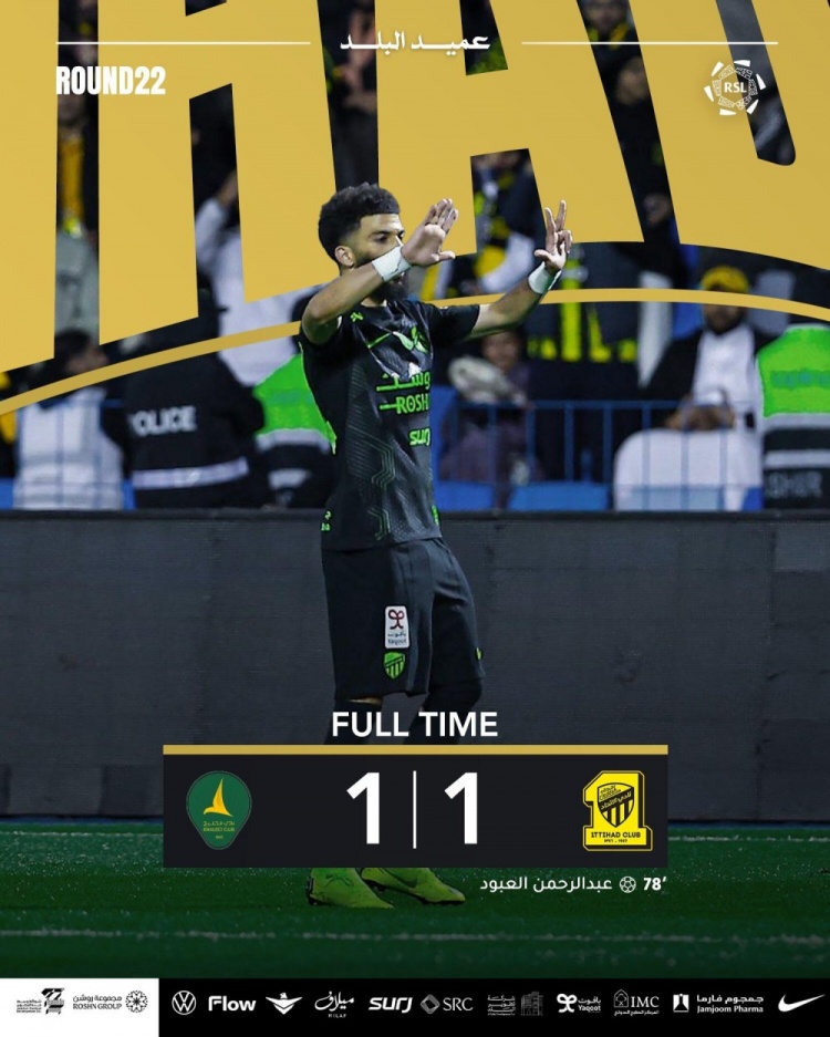 吉達(dá)聯(lián)合客場(chǎng)1-1戰(zhàn)平卡利杰,聯(lián)賽4連勝終結(jié)。