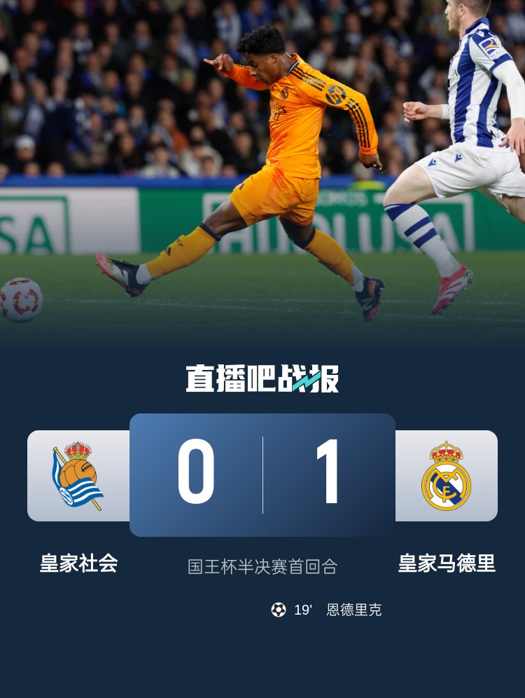 恩德里克制勝,皇馬1-0皇家社會(huì)占得先機(jī)。