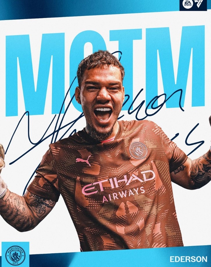 本場(chǎng)比賽曼城門將埃德森表現(xiàn)出色,完成6次撲救力保球門不失,賽后他也當(dāng)選曼城官方評(píng)選出的本場(chǎng)隊(duì)內(nèi)最佳球員。