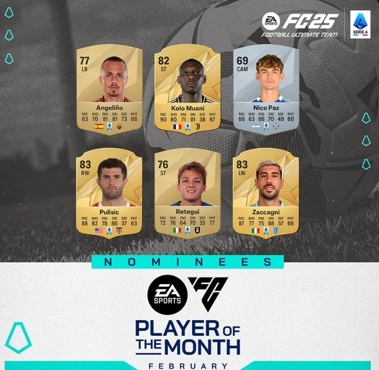意甲官方2月最佳球員候選:普利西奇、穆阿尼、尼科-帕斯在列