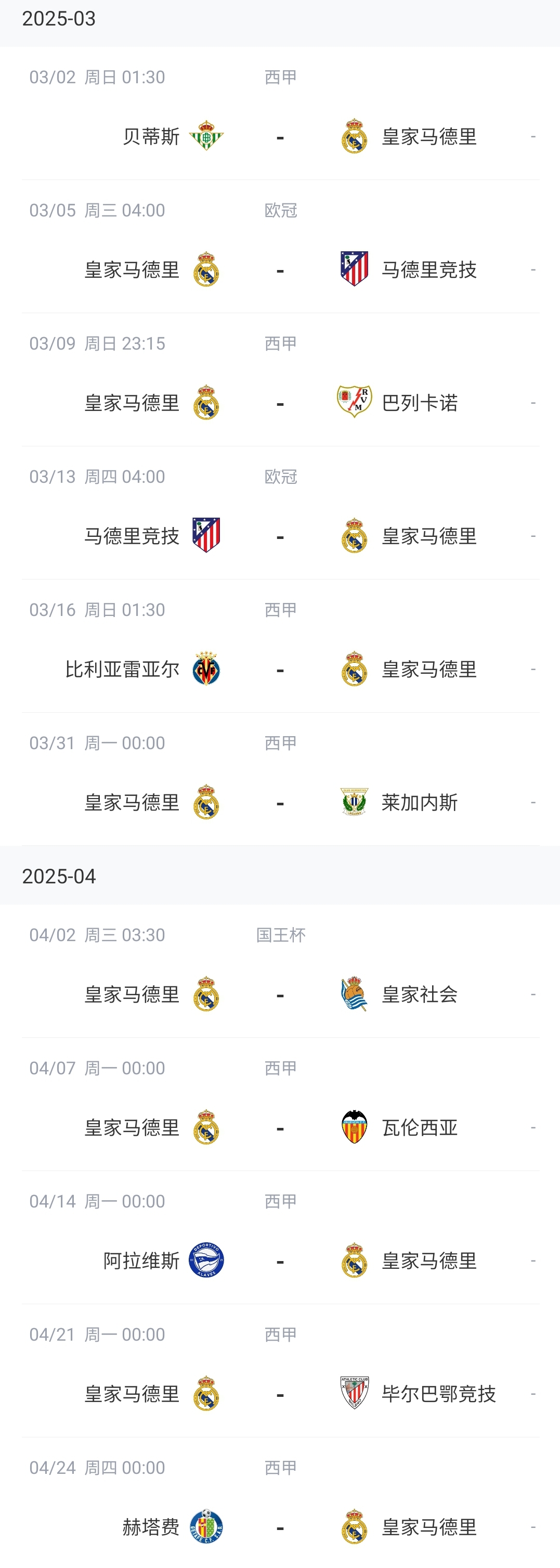 皇馬未來(lái)賽程