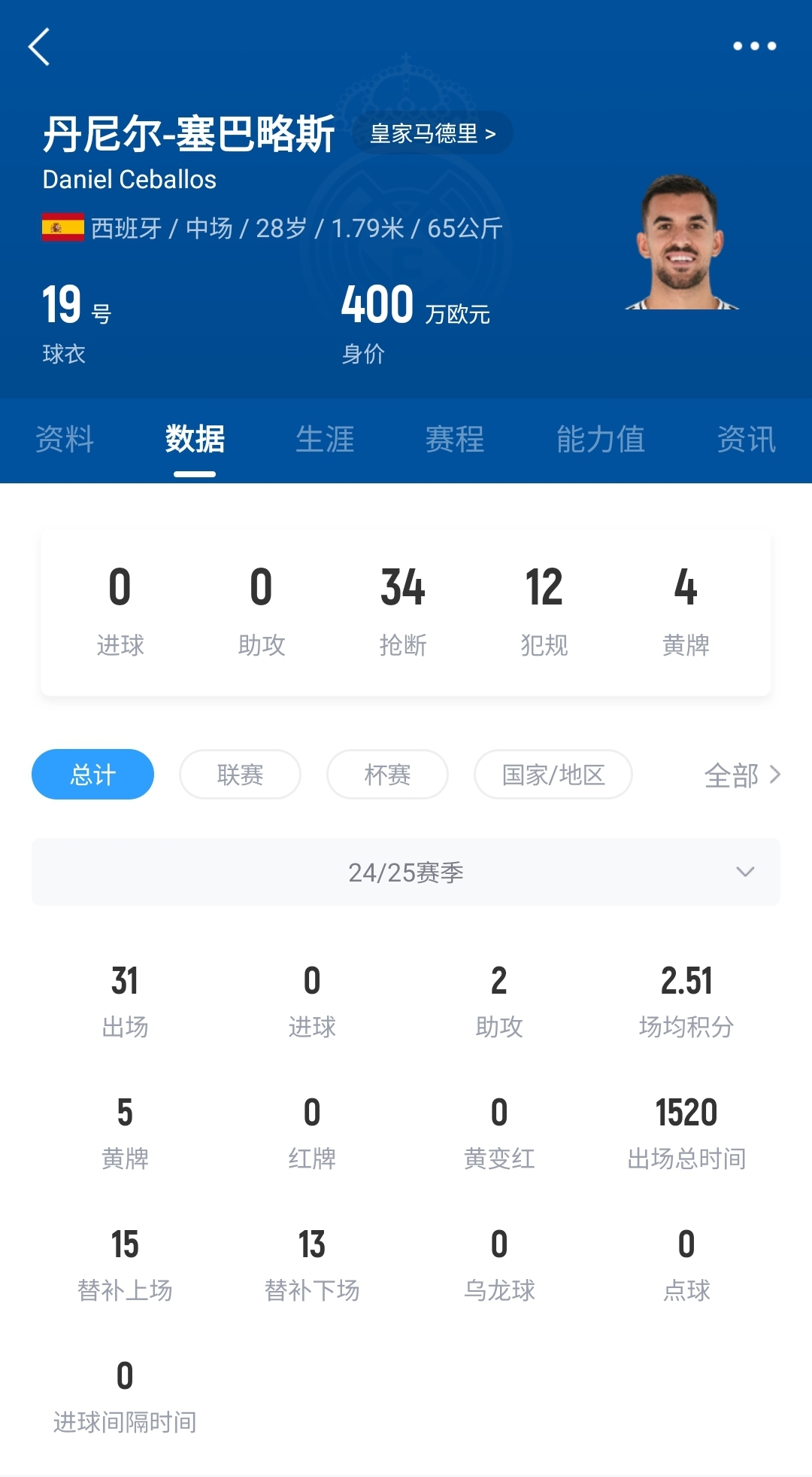 塞巴略斯本賽季是皇馬重要的輪換球員,總共出場(chǎng)31次,貢獻(xiàn)2次助攻。