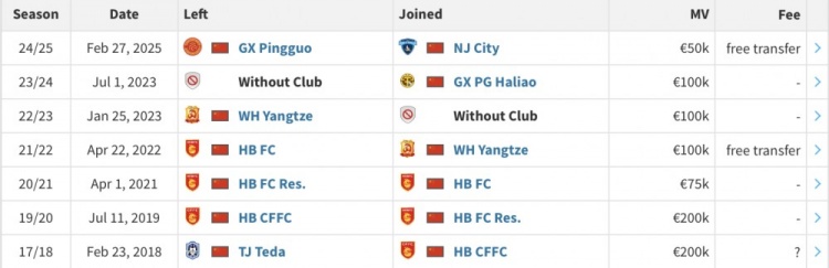 2月27日訊 根據(jù)德國轉(zhuǎn)會市場網(wǎng)站頁面顯示,胡人天已經(jīng)加盟中甲南京城市。