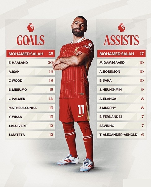 薩拉赫領(lǐng)跑英超射手榜和助攻榜,斯洛特不僅將帶來(lái)聯(lián)賽冠軍,還有可能為利物浦帶來(lái)一位金球獎(jiǎng)得主。