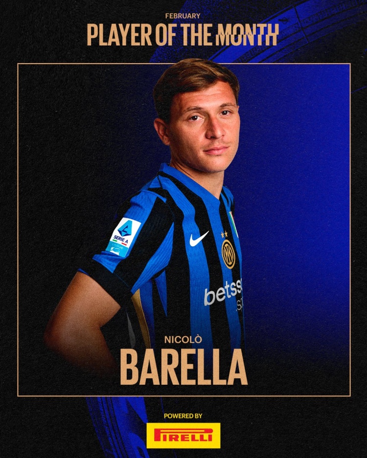 在2月,巴雷拉代表國(guó)米在各項(xiàng)賽事中出戰(zhàn)了6場(chǎng)比賽。最終,他擊敗了勞塔羅等人,當(dāng)選隊(duì)內(nèi)最佳球員。