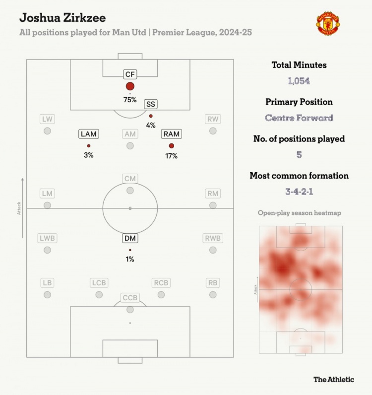 阿瑪德在曼聯最近幾個月的亮點球員之一,但曼聯中鋒仍然顯得有些不給力。在英超出場時間超過900分鐘的前鋒中,齊爾克澤平均90分鐘有2次射門,排在58名球員中的第36位。霍伊倫平均90分鐘非點球射門只有1.2次,排在第55位。