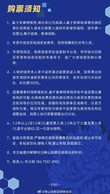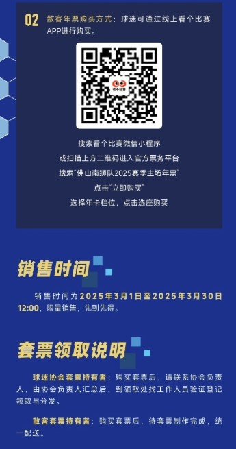 3月1日訊 中甲球隊(duì)佛山南獅公布新賽季年票公告,分三個(gè)檔次,最高1080元。