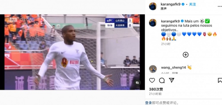 3月1日訊 中超第2輪,大連英博客場1-4不敵山東泰山,卡蘭加為英博打入本場唯一進(jìn)球,連續(xù)兩場破門。不過他也在進(jìn)球后6分鐘因蹬踏卡扎爾被紅牌罰下。