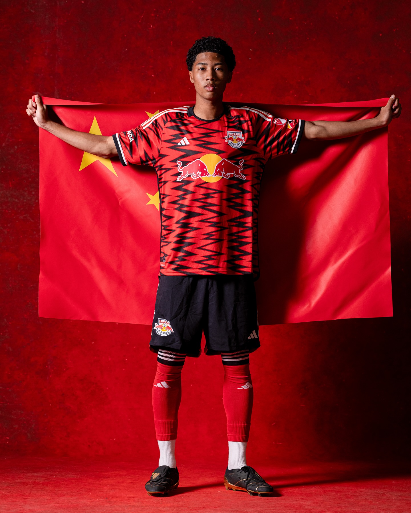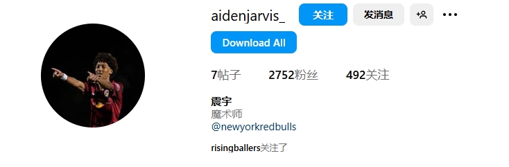 值得注意的是,賈維斯在簽約時身披中國國旗,證明他的華裔身份和認同,他的社媒名字也特地寫了個中文名“震宇”。