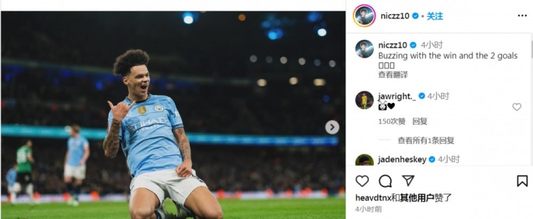 奧賴?yán)趇ns上寫道:“為勝利和2粒進(jìn)球感到興奮。”