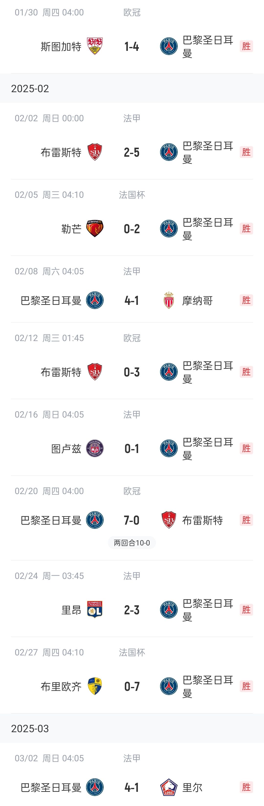法甲第24輪,巴黎圣日耳曼4-1戰(zhàn)勝里爾,在各項賽事豪取10連勝,近22場比賽保持不敗。