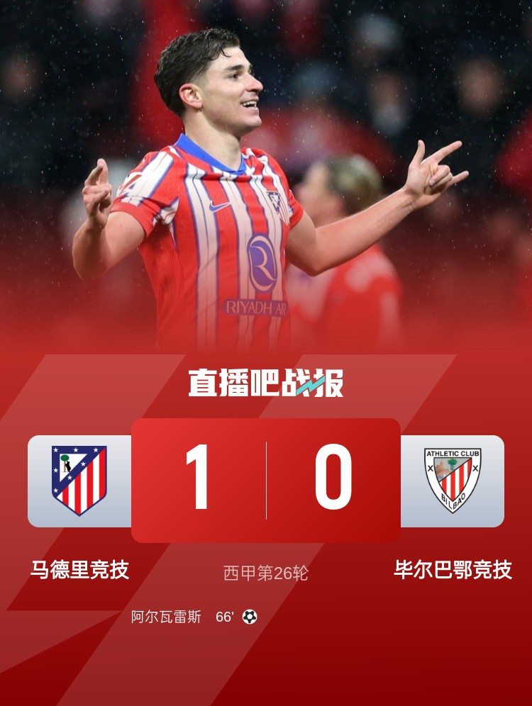 本輪西甲,馬競1-0擊敗畢巴,阿爾瓦雷斯攻入全場唯一進球。此役后,馬競先賽登頂。