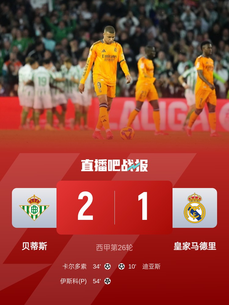 皇馬本輪1-2不敵貝蒂斯,白衣軍團在聯(lián)賽輸?shù)絷P(guān)鍵戰(zhàn)役,近5輪僅1勝。