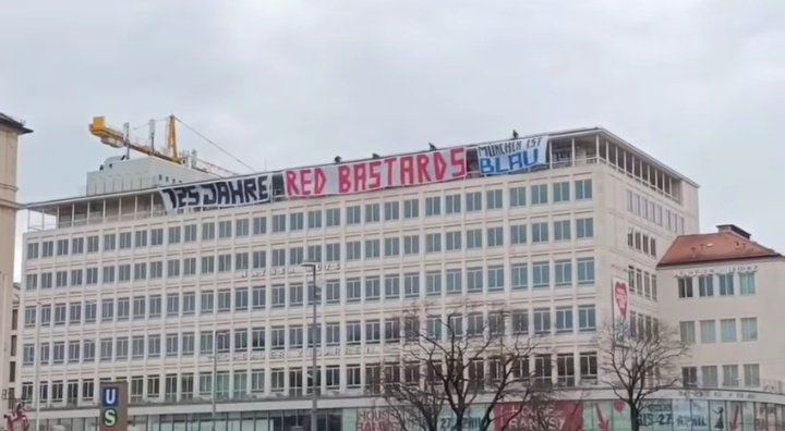 慕尼黑1860球迷掛橫幅嘲諷拜仁:紅色混蛋,慕尼黑是藍(lán)色的